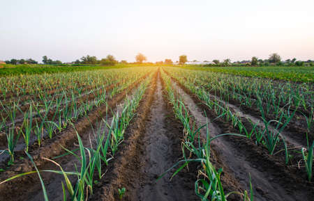 Onion plantation in the vegetable garden