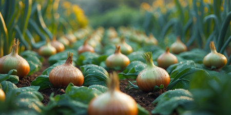 AI Generated. Onion plantation in the vegetable garden
