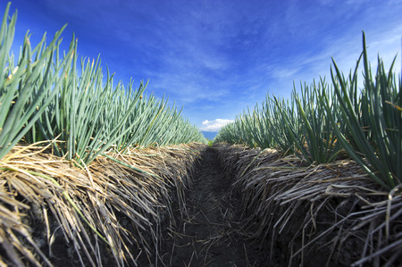 Onion field profile view with blurred background