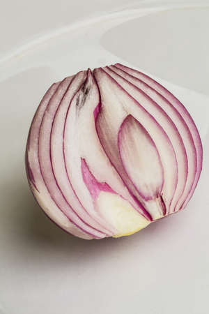 sliced red onion on the white background