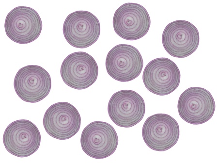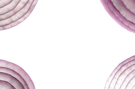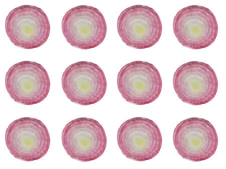 red onion slices. pattern texture on side position provides copy space for text. background concept isolated white background