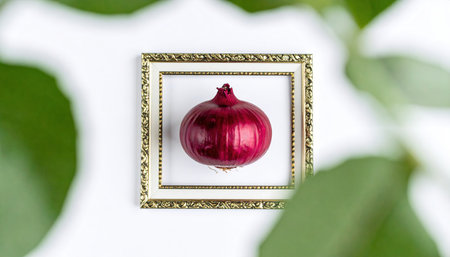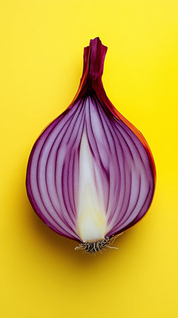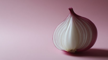 A beautifully presented red onion showcasing its delicate layers against a pastel pink backdrop. Perfect for culinary themes, health articles, or food aesthetics.