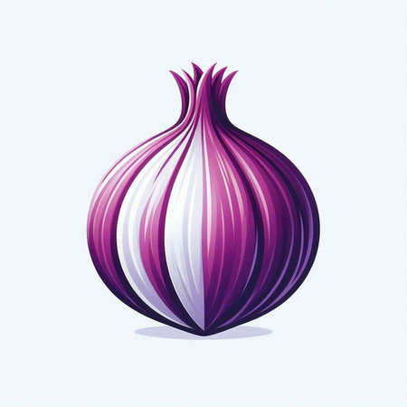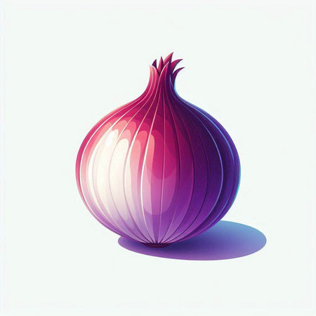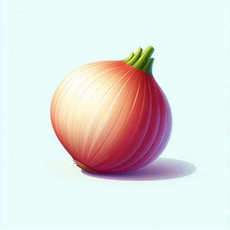 Illustration of a fresh red onion on a blue background with shadow
