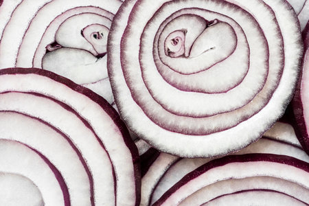 a background image of slice red onion