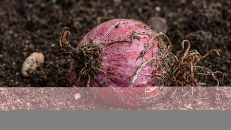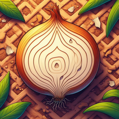 Detailed cross-section of a red onion showing layers and texture in an infographic format, with space for additional information or graphics.