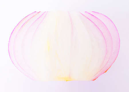 Sliced red onion on a white background. Toned.