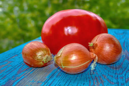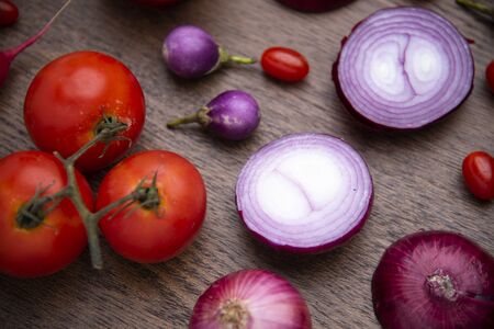 red onion on rustic wood, vegetables and vegetables