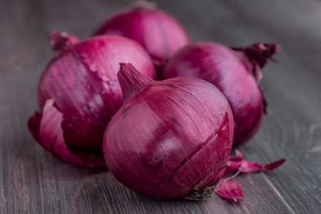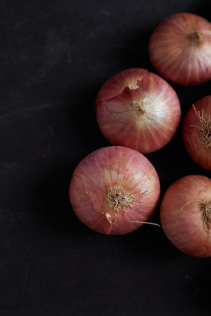 Red onions close up on dark background