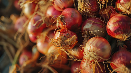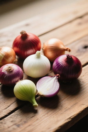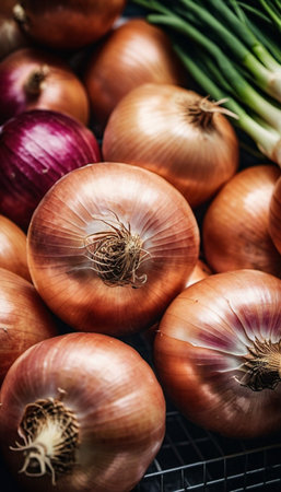 A stunning display of various onions, showcasing their vibrant colors and unique textures. Perfect for food photography, cooking inspirations, or organic produce themes.