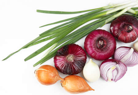 Different raw onion, isolated on white