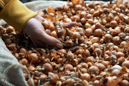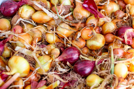 The new harvest onions at local farm market