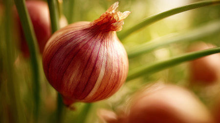 Onion on the ground. Selective focus. Shallow depth of field
