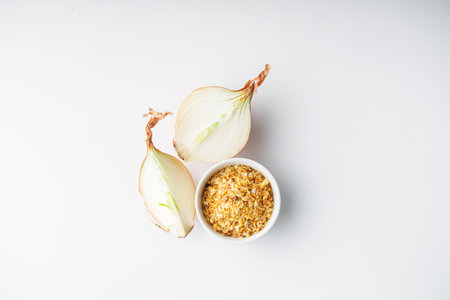 onion slices over on white background