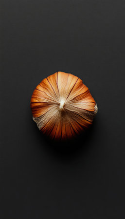 Golden onion with loose skins isolated on black with copy space.