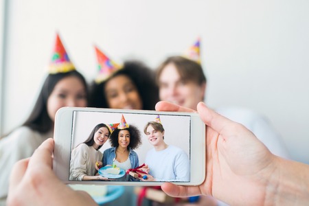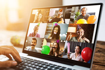 Online party, birthday, meeting friends.