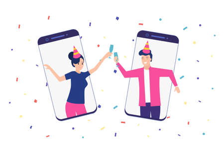 online party, people at an online quarantine party vector illustration