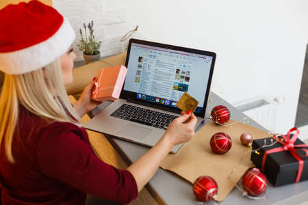 buy gifts for Christmas and new year via Internet. Online trading. Christmas sale in the online store