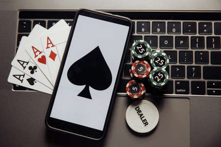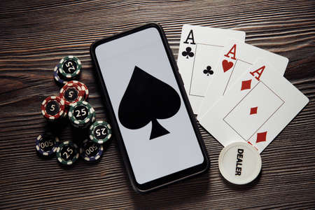 Online poker casino on smartphone. Online gaming concept photo for background.