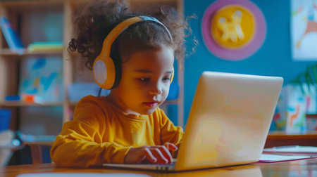 Young Child Engaged in Online Learning at a Cozy Study Area