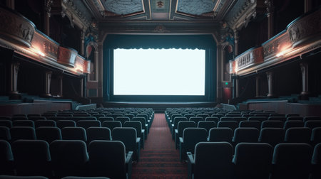 Cinema Elegance: Empty Vintage Movie Theater Waiting for an Audience