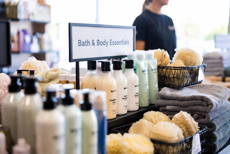 Spa and body care products on shelf in the beauty salon.