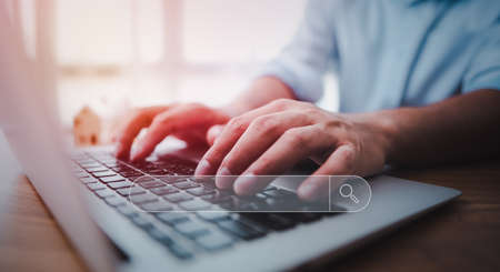 Searching Browsing Internet Data Information with blank search bar. man's hands are using a computer keyboard to Searching for information. Using Search Console with your website.