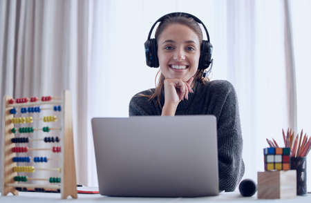 A teacher affects eternity. Shot of a young teaching an online lesson with her laptop at home.