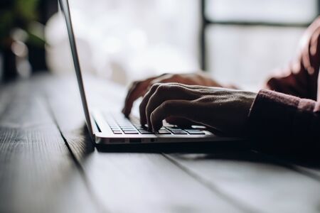 close up hand typing on laptop keyboard when woking at home