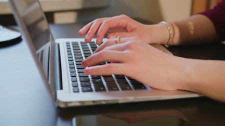 Closeup of a female hands busy typing on a laptop