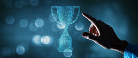 A hand holding a golden award engraved with 'Top 10,' celebrating the recipient high achievement