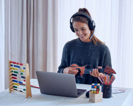 A teacher affects eternity. Shot of a young teaching an online lesson with her laptop at home.