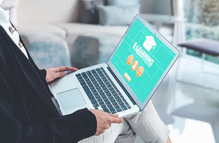 E-learning and Online Education for Student and University Concept. Graphic interface showing technology of digital training course for people to do remote learning from anywhere.