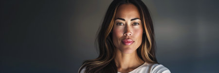 Portrait of a beautiful mature woman with long brown hair and blue eyes