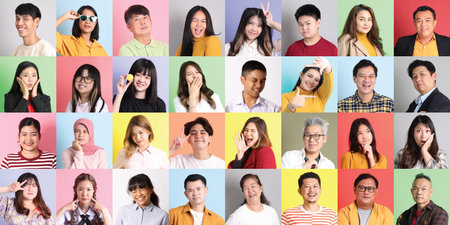 Diverse collection of happy faces celebrating multiethnic lifestyle