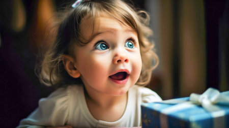 Witness pure bliss! Child's face glows with delight, basking in the joy of play or receiving a coveted surprise.