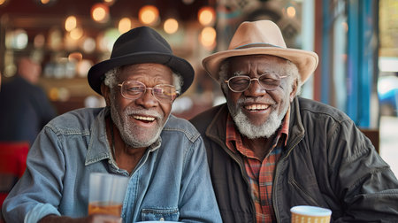 Cheerful man senior engaging in conversation at a coffee shop, exemplifying active elderly lifestyle. A.I.