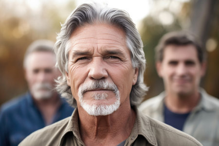 portrait of a handsome middle-aged men in casual clothes outdoors. AI generated