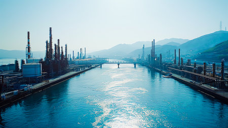 Industry pipeline transport petrochemical, gas and oil processing, furnace factory line, rack of heat chemical manufacturing, equipment steel pipes plant in daytime with Generative AI.