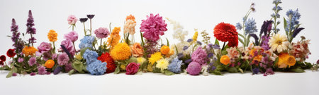 This image showcases a vibrant arrangement of various flowers against a light backdrop, perfect for spring themes, decorative projects, and creative inspiration.