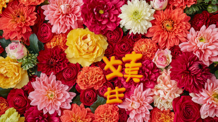 A Vibrant Floral Explosion Featuring Colorful Dahlias, Capturing Elegance and Serenity in Design