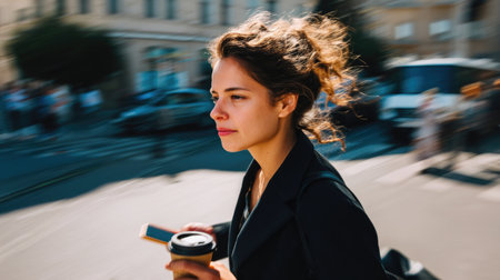 Confident Businesswoman Walking with Coffee