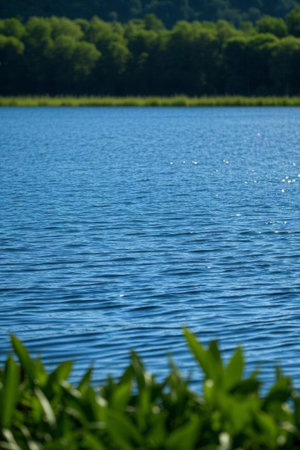 Lake in the forest reflected in the water of the lake. Summer landscape.