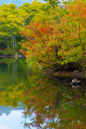 Autumn Leaves at Goshikinuma (Five Volcanic Lakes or Five Colored Lakes), a popular destination in Highlands in autumn in Fukushima prefecture, Japan