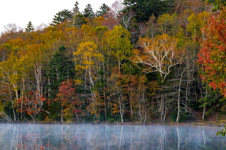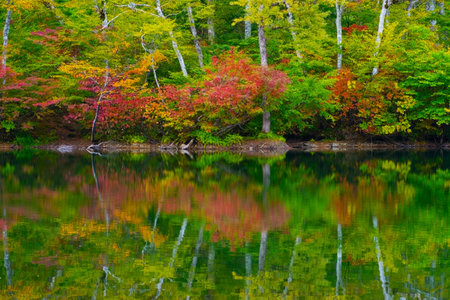 Shiga Kogen / Kido Pond in autumn Autumn leaves on the lakeside (Nagano Prefecture)