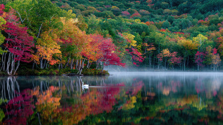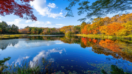 The Imaging of autumn color of pond, Karuizawa, Nagano, Japan