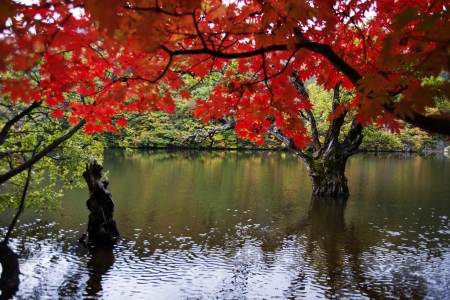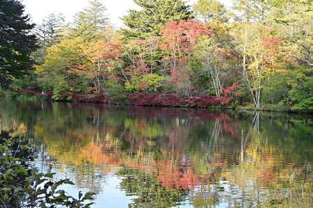 Autumn colours of Kumoba pond,Karuizawa,Japan