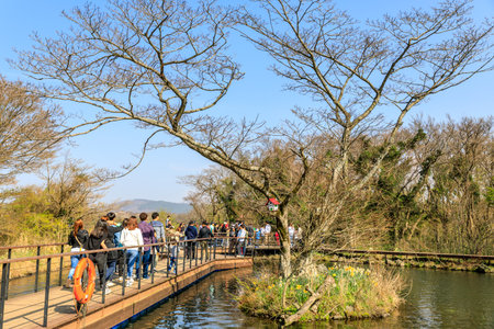 Tourists in Ecoland Theme Park in Jeju island, South Korea