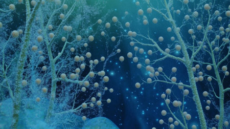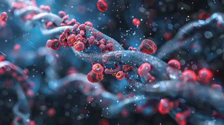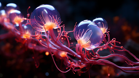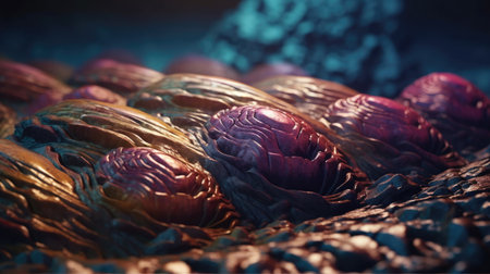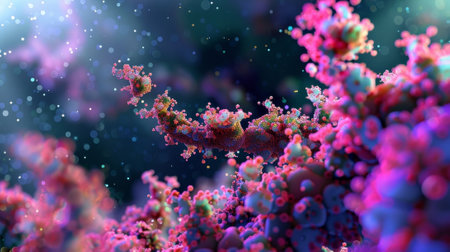An intricate digital representation of bacteria displaying vibrant colors and glowing elements, highlighting the fascinating world of microscopic life in a stunning abstract setting.