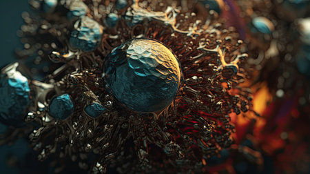Vibrant molecular structures display intricate connections showcasing the beauty of chemistry at a microscopic level with rich colors and detail.