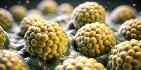 Fat cells background. Inside human organism. 3d render, illustration. closeup.